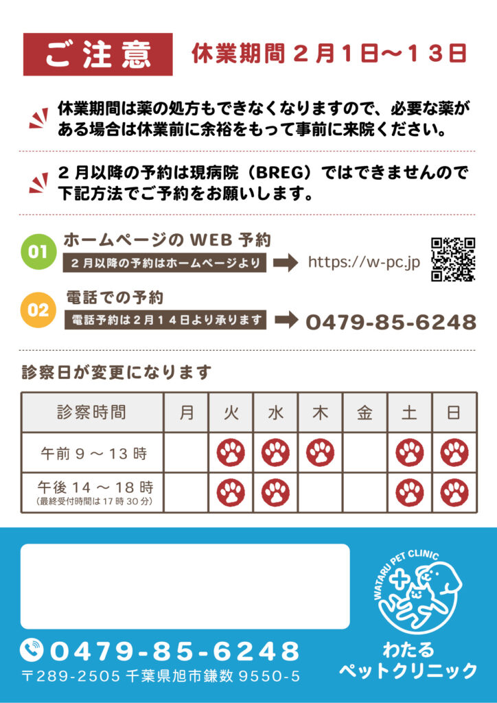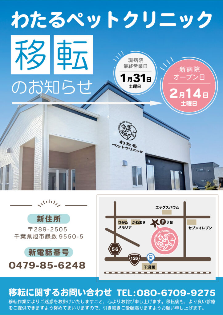 引き続き、わたるペットクリニックをどうぞよろしくお願い申し上げます。